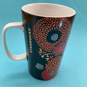 STARBUCKS 2014 Dot Collection Brown Floral Gold 16oz. Ceramic Coffee Tea Mug Cup.