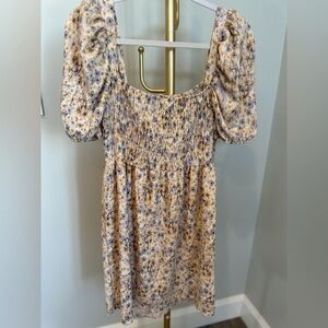 6/$20 H&M Textured Knit Dress in Cream and Tan with smocking NWT Large
