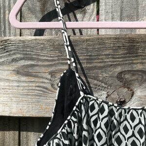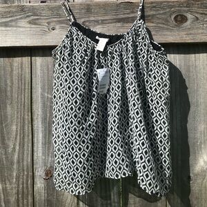 A great addition to your stylish wardrobe with this chic black and white geometric top. Perfect for any occasion, this top offers a modern look with its striking pattern. Pair it with your favorite jeans or skirt for a complete outfit. It is brand new with tags.