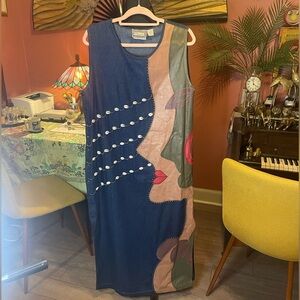 AMAZING vintage 70s 80s Molato denim dress with shell and abstract female face