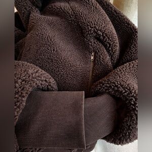 Alo Yoga Foxy Sherpa Jacket – Brown – XS – Hooded Zip Teddy Fleece