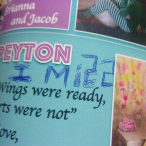Several pictures someone wrote on them BFF , I Miss and Friend.