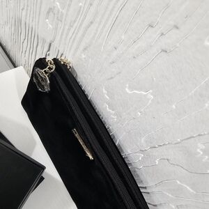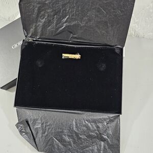 Elegant black velvet pouch by Giorgio Armani. Fold in half, magnetic, double zippers.