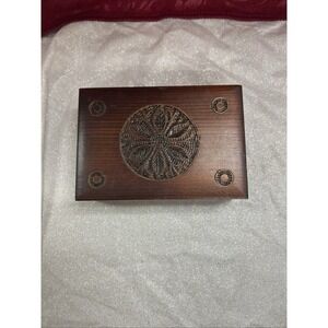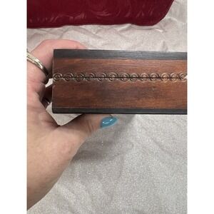 Crafted from the rich and timeless rosewood, this vintage jewelry chest is a sophisticated choice for your precious accessories. The exterior showcases a classic rectangle shape with a deep brown hue that exudes a sense of warmth and nostalgia. At 5 inches in length, 3.5 inches in width, and 1.5 inches in depth, this compact yet spacious box can comfortably hold a collection of more than 25 pieces, including bracelets, cuffs, earrings, necklaces, anklets, rings, and body jewelry. The interior remains unlined, offering a simple yet protective surface for your jewelry. With its capacity to hold a variety of pieces, this jewelry chest is perfect for keeping your ensemble coordinated. Whether displayed on a vanity or nestled in a dresser, this piece is a testament to the timeless appeal of handcrafted workmanship.