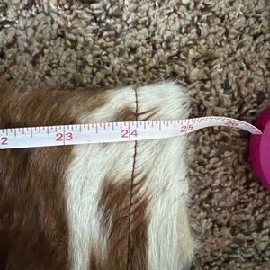 Stylish western cowhide jacket with a zip closure and two exterior pockets. One interior pocket. Features a mix of brown and white colors. Fully lined. New and unworn. Medium. Measurements in photos. This coat was ordered from Etsy and made to order but was suppose to be a small and they sent the wrong one. It’s too expensive to ship back since it came from Dubai. The craftsmanship is really nice. Perfect for any occasion. Reasonable (not lowball) offers considered on all my listings.