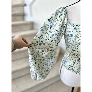 Abercrombie Light Green & Blue Ditzy Floral Puff Sleeve Cottagecore Blouse