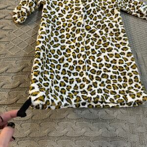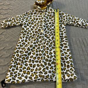 It features a satin/silky lined hood with cute little ears, snap front and a drawstring around the bottom. Drawstring is not the easiest to pull, but is functional. The material is versatile in that it could be toweling but also suited to stay warm bc it's thicker material.