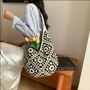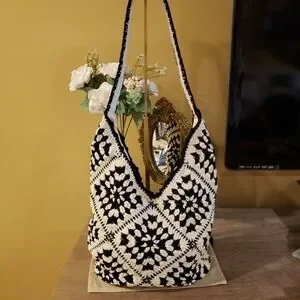 NEW! Crochet Boho Shoulder Bag (Black & White)