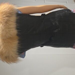 Leather vest with racoon collar