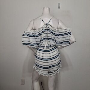 Lovers + Friends Blue White Malia Ruffle Coastal Cold Shoulder Romper Size M