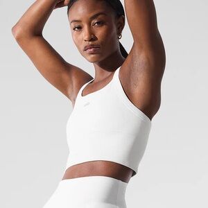 Alo Seamless Ribbed Favorite Bra Tank. Core White. Size XS. Compressive fit. Removable pads. Adjustable straps. Excellent condition.