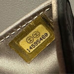 -- “CHANEL" written vertically in black on the right side of the sticker