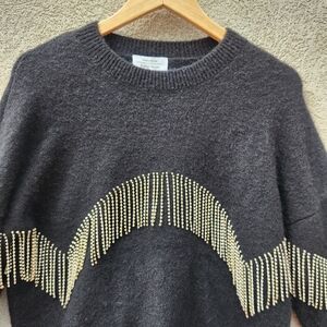 & OTHER STORIES Women’s Rhinestone Fringe Crop Sweater Small Black Wool Alpaca