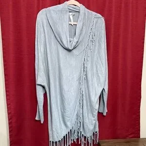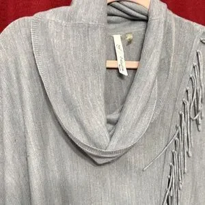NY Collection Light Gray Cowl Neck Sweater with Fringe