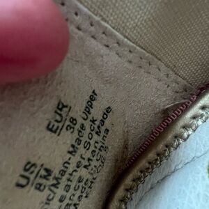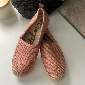 Stylish espadrille flats. Tan woven upper. Cream toe cap. Comfortable and chic.