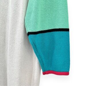 Vintage 1980s White Red Green New York Colorblocked Mini Midi Sweater Dress