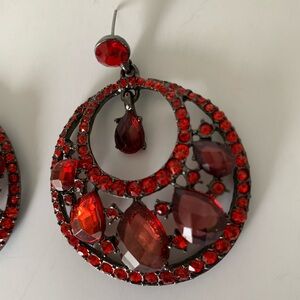 Vintage Red Jeweled Hoop Earrings Drop Rhinestones Stud Top Pierced Ears