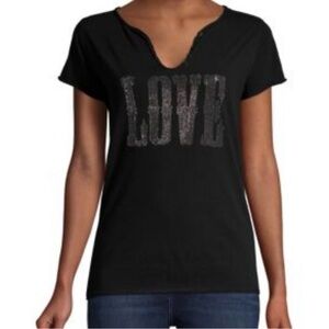 ZADIG & VOLTAIRE Tunisien Strass Love Rhinestone Black T Shirt