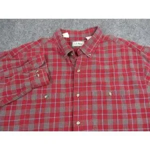 LL Bean Shirt Mens Extra Large XL Red Blue Flannel Plaid Casual Button Up
