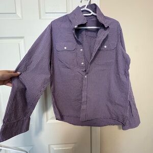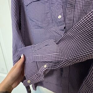 Stylish purple gingham shirt by Michael Kors. Ideal for casual outings. Features button-down design.