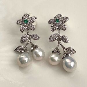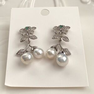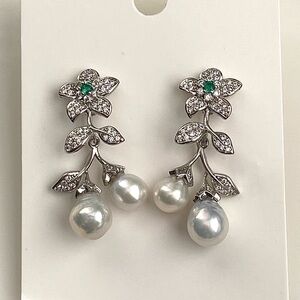 New in box high quality 7-8mm white metallic freshwater pearl with blue luster. Flower with clear czs and green crystal