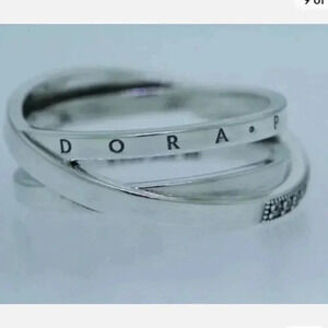 > Ring engraved with Pandora and has multiple cubic zirconia stones