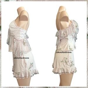 Majorelle Whitney shorts and matching camisole top. Floral accents throughout. Mesh overlay. Girly, flirty and feminine. Back zipper, hook & eye closure. Hand wash only.