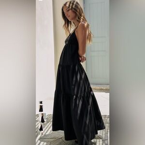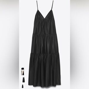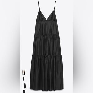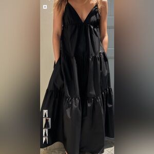 Chic black sleeveless dress with a flowing design. Perfect for any occasion.
