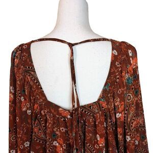 Francesca's Mi Ami Paisley Top Size XL Brown Feminine Bohemian Peasant Hippie