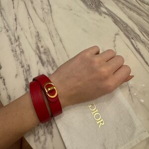 Elevate your style with this stunning Dior red leather double wrap bracelet, featuring a luxurious gold buckle. Perfect for adding a touch of elegance to any outfit.