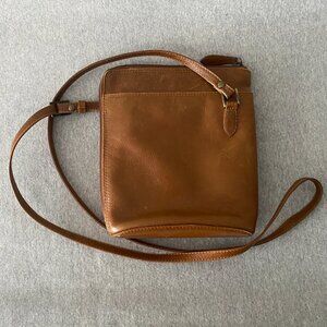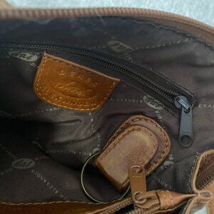 Derek Alexander Two Sided Zip Cross Body Bag Tan Premium Genuine Leather