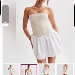 Chic strapless dress with a cream top and white skirt. Ideal for stylish occasions. Worn once — great condition!!