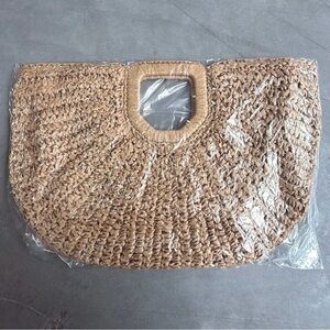 Ramla Bohemian Rattan Half Moon Bag- Tan