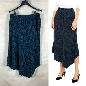 ALFANI Black/Teal Floral Asymmetrical Hem Midi Skirt NEW 14