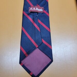 Jos A Bank Mens Navy Red Stripe Silk Blend Necktie
