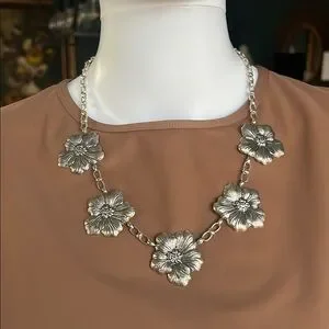 Vintage, Italian Jewelry, Floral Necklace, Statement Necklace, Luxury Jewelry, Collectible, Designer Jewelry, Silver Jewelry, Heirloom, Romantic