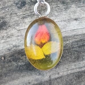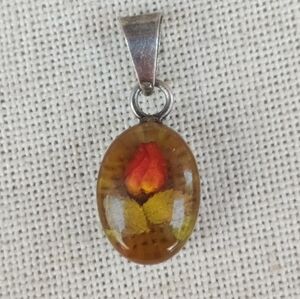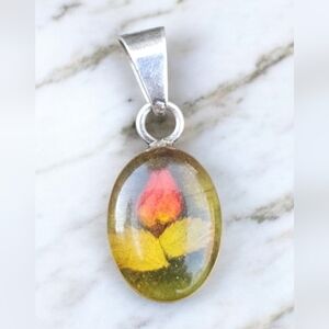 Super rare cute 1" vintage sterling silver pendant with a real rosebud and leaves