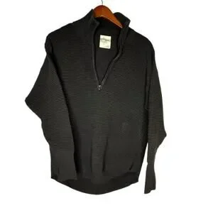 Offline by Aerie Ribbed Quarter Zip Long Sleeve Oversized Knit Black Medium