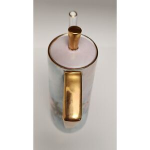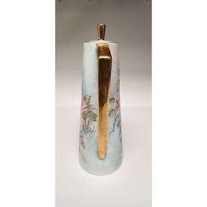 VINTAGE 1970s HAND PAINTED COFFEE TEA POT, ROSES & GOLD