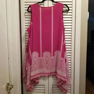 Women's DG2 top by Diane Gilman. Boho high-low flowered hem pink top. Size 1X.100% Polyester. Pit to pit 24" and longest hem length 39" and shortest hem length 30". Great condition. Bundle and save. Ships same or next day.