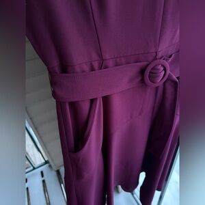 🆕 Taylor Burgundy Belted Long Sleeve V-Neck Fit & Flare Dress Size 8 Midi Hi-Low