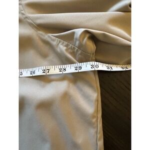 Classic Polo Ralph Lauren full zip jacket in a versatile beige color. Features the iconic embroidered pony logo on chest with a lightweight shell and plaid interior lining. Elastic hem and snap cuffs provide a comfortable fit. Tagged size 2XLT (Big & Tall – Tall length). Great everyday jacket for layering.