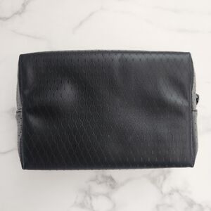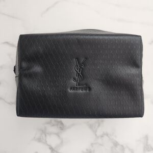 Yves Saint Laurent Parfums beauty bag. Crafted in sleek black with a subtle hexagonal texture and embossed YSL logo, this pouch embodies timeless elegance and modern sophistication.