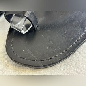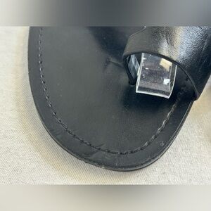Vince Camuto Tado black leather slip-on sandals with an adjustable buckle womens size 10. Great condition!! Minor indents by toe area. Sleek black sandals with adjustable buckle. Perfect for casual wear.