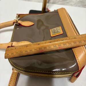 Dooney & Bourke Patent Leather Zip Zip Satchel in taupe brown