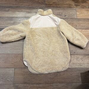 Warm and stylish fleece jacket. Features front zipper and pockets. OVERSIZED Fit. Size S but will fit S/M. Very cozy. Long/ below waist length.