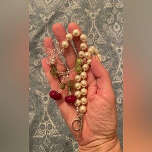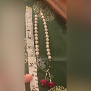 Cherry floral faux pearl & beaded necklace with 925 sterling silver toggle closure. Like new