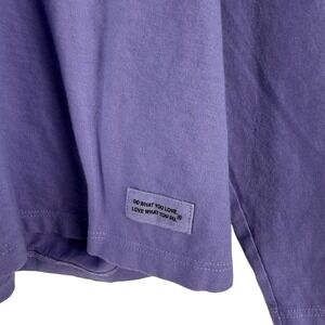 Life Is Good Crusher long sleeve tee in a soft purple shade featuring the popular quote "Be the Person Your Dog Thinks You Are" with a dog silhouette graphic. Comfortable, broken-in feel that Life Is Good is known for.