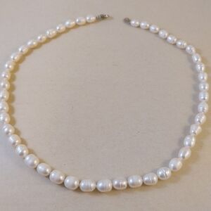 This elegant white pearl necklace adds a touch of sophistication to any outfit. Perfect for any occasion.