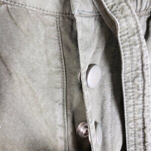 Stylish olive green cropped pants. Features a high waist with a tie belt. Perfect for casual wear.